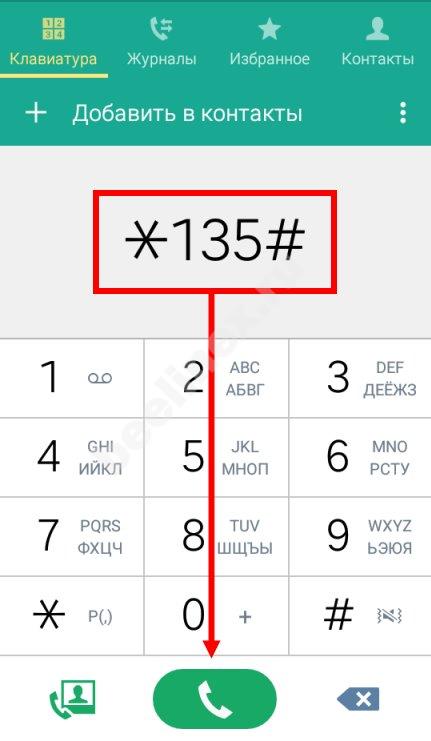 - Наберите код Наберите *135# и нажмите на иконку вызова;