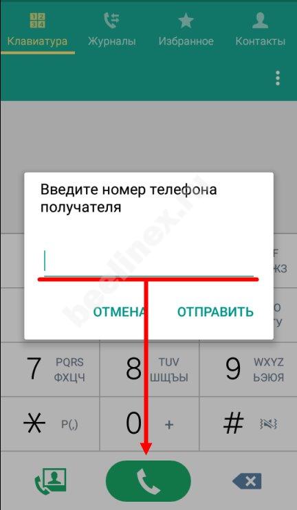 Перечисление средств посредством USSD-сервиса выполняется с помощью набора определённого сочетания цифр и символов: