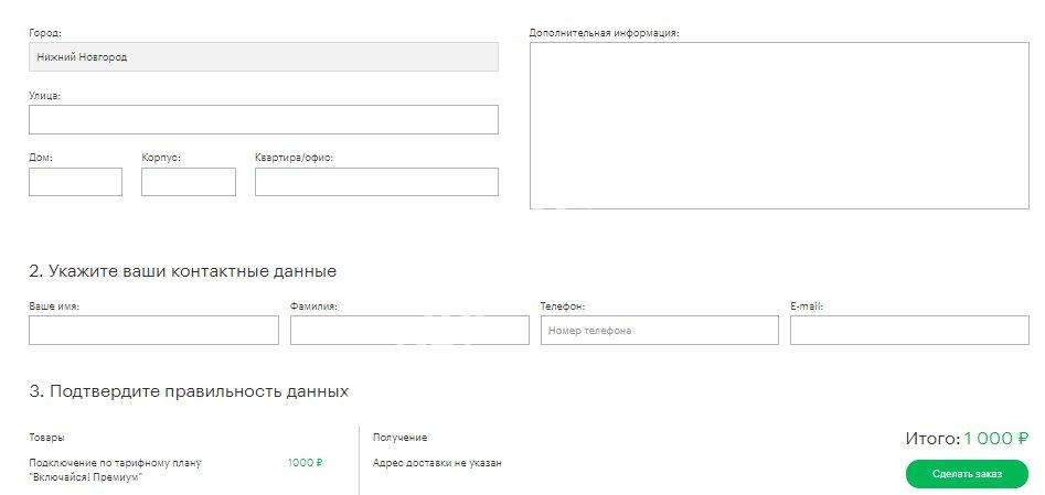 Кнопка подключения - введите необходимые данные и подтвердите действие (кнопки соответственно «Оформить заказ», «Начать перевод» или «Получить код).