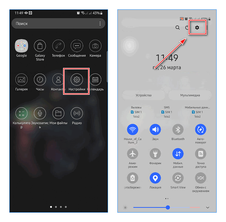 1. Раскройте главное меню вашего смартфона и выберите «Настройки». Вы можете получить к нему доступ с панели быстрого доступа, нажав на значок шестеренки.