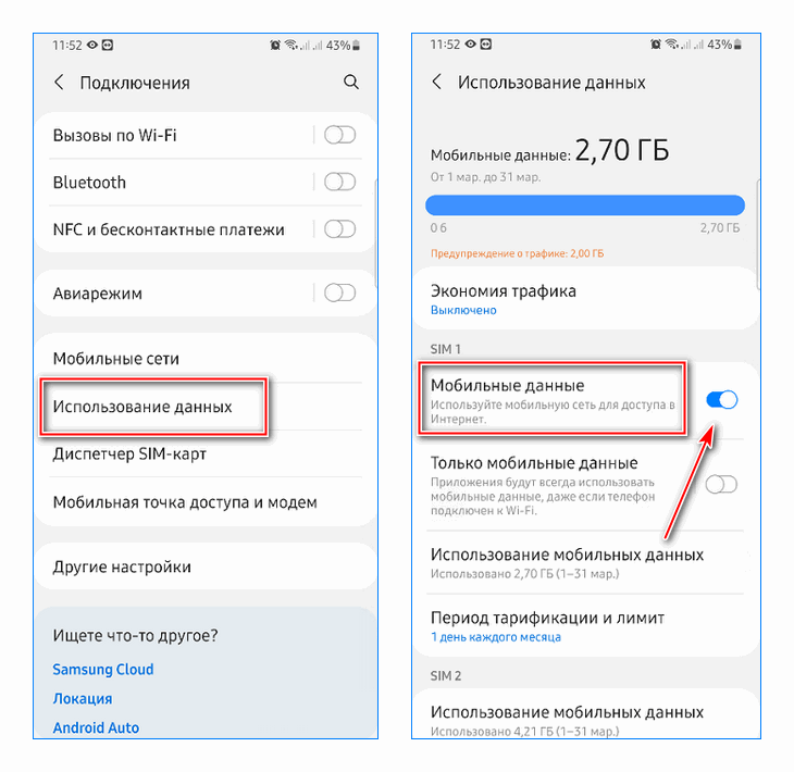 4. Отключение мобильного интернета в настройках Android-смартфона