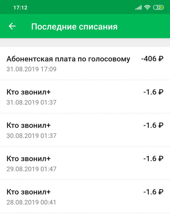 В расходах я обнаружил ежедневную отмену услуги «Кто звонил +». В подключенных платных услугах это не так, потому что он один раз был осторожно отключен. Но это не остановило Мегафона и он ворует деньги со счета, надеясь, что потеря 1,6 рубля будет незаметной. Осторожно.