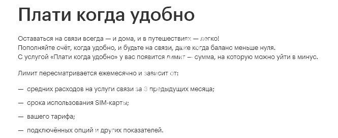 «Плати, когда удобно» — полезная услуга для одних абонентов, а для других — непонятная, запутанная и сложная в использовании услуга. Попробуйте, и если это не сработает, вы знаете, как от этого избавиться.