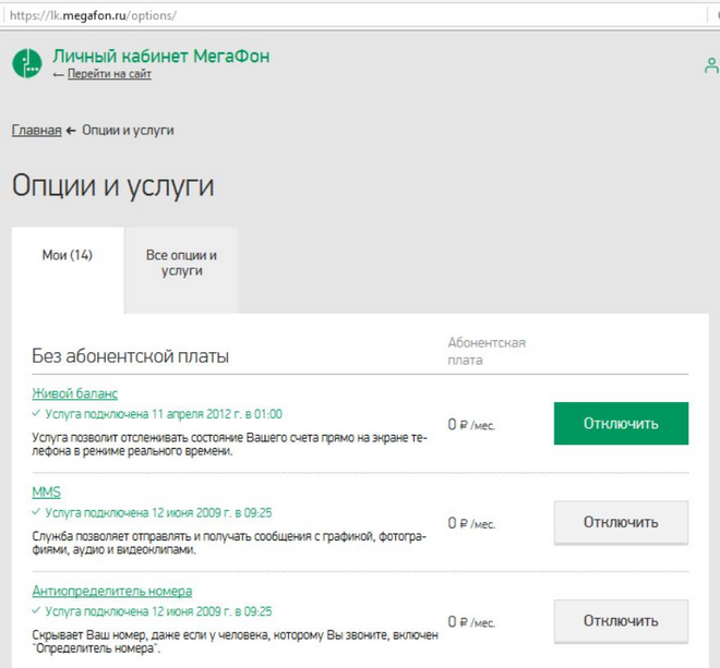 - Как самостоятельно отключить услуги и опции через Личный кабинет Мегафона