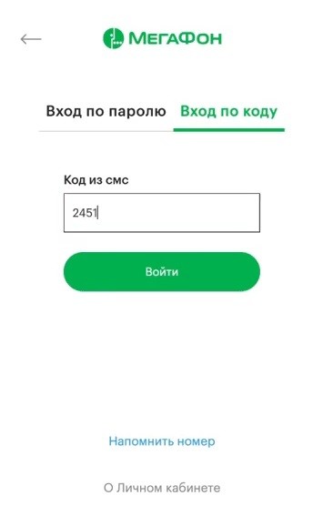 МегаФон отправит сообщение с одноразовым кодом, после его ввода вы сможете начать пользоваться интерфейсом: узнавать интересующую информацию, пополнять счет, подключать / отключать услуги, опции, переходить на другие тарифы, детали заказа и т.д.