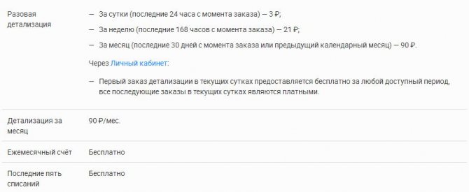 Предоставляется подробная запись звонков и других действий, а также начислений и начислений за календарный месяц. Услугу можно активировать на постоянной основе.