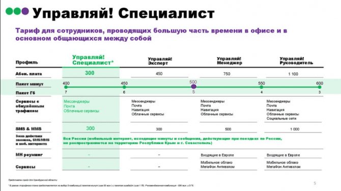 2. Тариф мегафон «Управляй! Специалист»: подробное описание