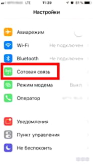 Рисунок 4. Окно настроек сотовых данных на Iphone