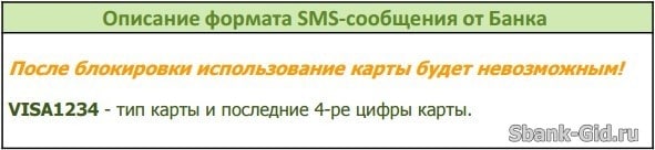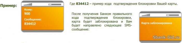 При вводе проверочного кода приходит подтверждение блокировки карты: