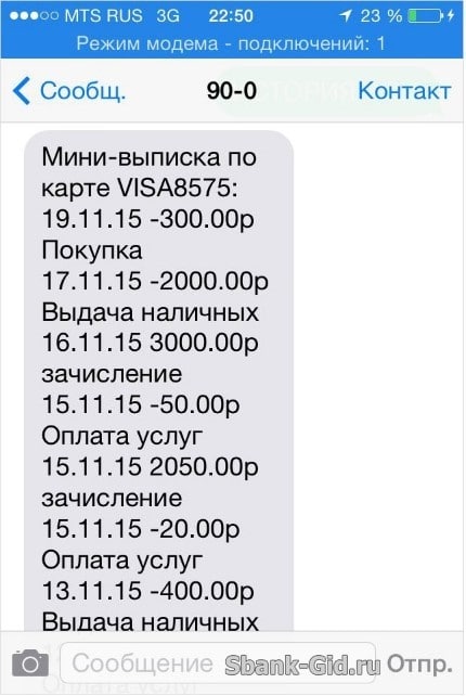 SMS-команда для получения информации об операциях по карте Сбербанка