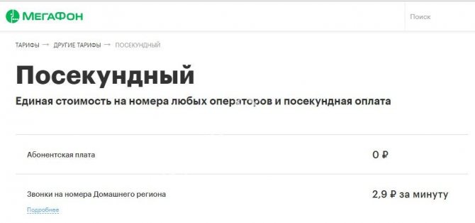 Описание тарифа «Посекундный» Мегафон