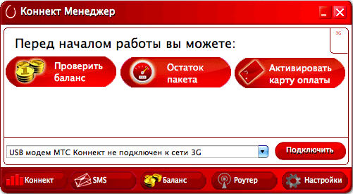 Если вы покупаете модем или USB-роутер в салоне мобильного оператора, специально подключать «Коннект Менеджер» не нужно. В этих гаджетах уже есть необходимое программное обеспечение. Все, что требуется от абонента в этом случае, — это пойти домой, подключить устройство к ноутбуку или ПК и запустить утилиту.