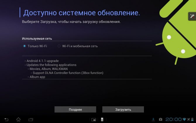 - Установите новую версию Android. Загрузка занимает несколько минут. Во время этой процедуры гаджет перезагружается.