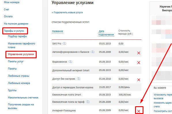 - также вы можете удалить услуги МТС через «Интернет-помощник». Для этого зайдите на главный сайт ООО «МТС» и перейдите на вкладку «Моя учетная запись». Он находится в верхнем углу портала. Затем введите имя пользователя и пароль, которые были предоставлены вам при регистрации в системе. Затем нажмите «Параметры» и «Управление моей учетной записью». На информационной панели посмотрите, какие службы в настоящее время активированы, и удалите их, нажав «Деактивировать».