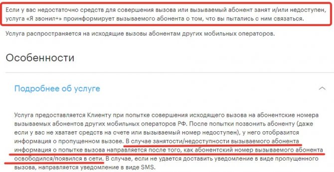 Вы также можете воспользоваться услугой «Я звонил», когда система «Мегафон» предлагает совершить звонок за счет абонента. При звонке автоматически активируется самоинформатор, который информирует вызываемого абонента об отсутствии средств на счете звонящего и делает предложение о предоставлении. Для установления соединения другой абонент должен дождаться ответа. Если звонок отменен вторым пользователем по какой-либо причине (отказ, занят, недоступен), система отправит SMS на ваше имя, в котором будут отображаться время и дата звонка, а также текст: «Абонент ..не удалось с вами связаться. Вы можете перезвонить. Информация об услуге по телефону 0759».
