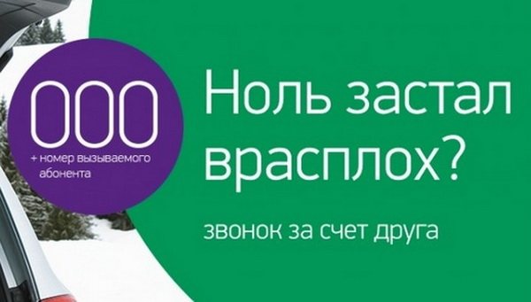Эта услуга означает, что отправлять SMS с запросом звонка не нужно. При использовании функции абонент получит звонок, в котором будет сообщение от бота с просьбой принять звонок за свой счет. Для такого звонка перед номером необходимо набрать 000. Стоимость звонка для звонящего пользователя — 0 рублей, для номеров в регионе отправления — 2 рубля за минуту, для абонентов вне региона отправления — 3 рублей, один звонок в роуминге будет стоить 10 рублей.