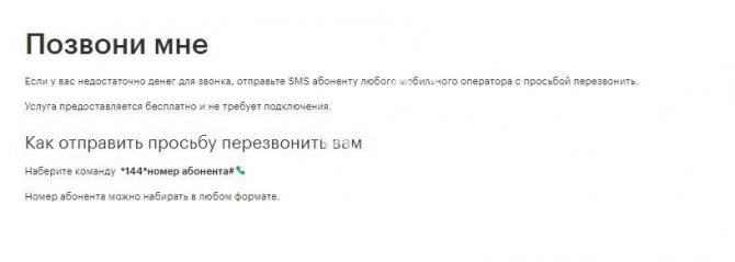 Сложностей это не вызывает, нужно набрать USSD-команду * 144 * 7XXXXXXXXX #. После отправки SMS на указанный номер будет отправлено сообщение: «Абонент 7YYYYYYYYY просит вас перезвонить ему», где 7YYYYYYYYY — номер отправителя запроса.