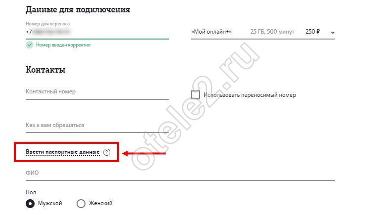 4. Заполните открывшиеся поля: необходимо указать свои паспортные данные и ввести всю информацию по доступному номеру;