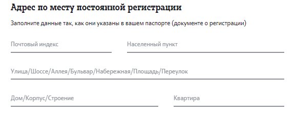 • Заполните раздел «Постоянный адрес регистрации». Напишите почтовый индекс, город, улицу и дом, квартиру;