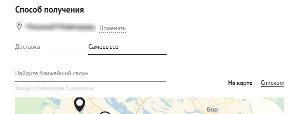 • Нажмите на соответствующий способ получения: самостоятельно в салоне или курьером;