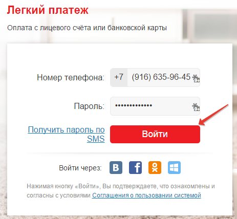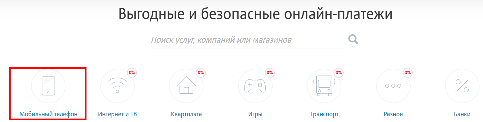 4. Нажмите «Оплатить услуги на телефоне», и сайт перенаправит клиента на страницу «Кошелек».