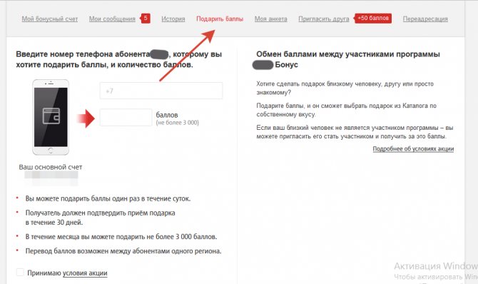 13. Подарить балы МТС через личный кабинет — просто