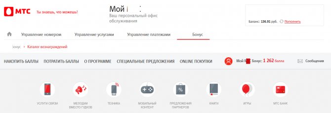 Каталог бонусных вознаграждений МТС