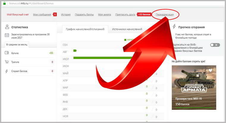 как переводить баллы с мтс на мтс