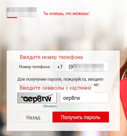 3. Если в телефоне установлена ​​SIM-карта МТС, авторизация будет произведена быстро, без ввода номера телефона. В противном случае введите свой номер и получите код доступа.