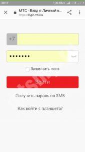 • Войдите в личный кабинет, указав в полях свой номер телефона и пароль. Если вы забыли свой пароль или не знаете о его существовании, нажмите на сообщение «Получить пароль по SMS».