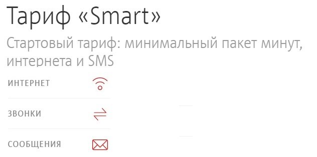 Например, тарифный пакет «Смарт» (смарт-линия) рассчитан на активных пользователей услуг связи и доступа к сети. Это один из самых привлекательных тарифных планов для абонентов, активно пользующихся услугами связи, он представлен 5 пакетными продуктами, предлагающими от 1 ГБ до 15 ГБ ежемесячного трафика, от 250 до 3000 минут — ежемесячную плату от 300 до 1600 рублей.