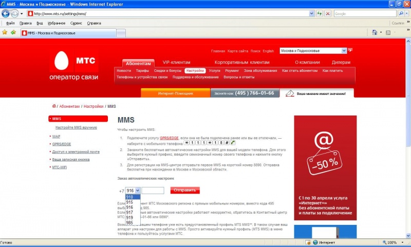 В случае, если пользователь МТС по определенным причинам не может настроить Интернет своими руками, можно использовать два варианта: отправить сообщение на служебный номер или воспользоваться официальным сайтом МТС и следовать дальнейшим инструкциям.