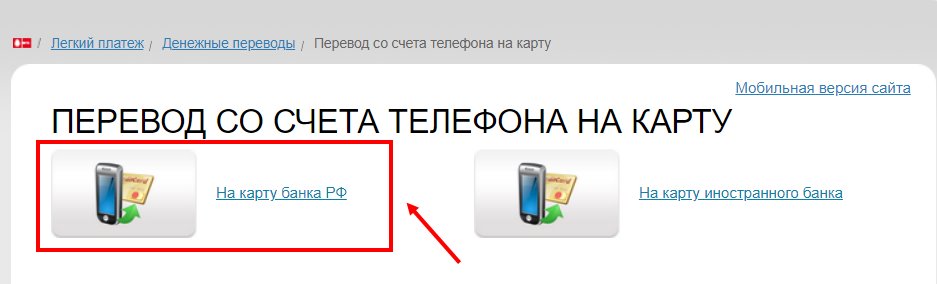 Перевести деньги с мобильного счета на банковскую карту можно через несколько сайтов МТС: