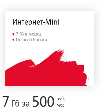 Этот вариант самый маленький и скромный из всех, что предлагает оператор. Согласно ему, пользователю предоставляется всего 7 гигабайт интернет-трафика на срок до 30 дней, что недостаточно для современных людей и их запросов.