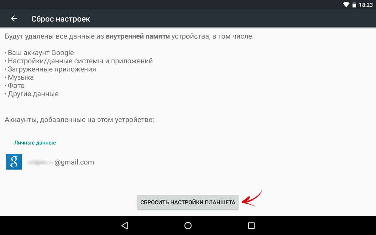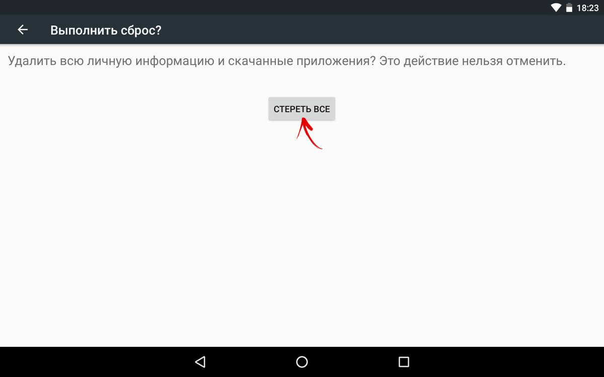 - Нажмите «Сбросить настройки планшета (телефона)».