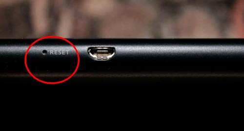 Существуют такие устройства, на которых разработчики предусмотрели отдельную клавишу жесткого сброса. Она находится в специальном отверстии с надписью «RESET».