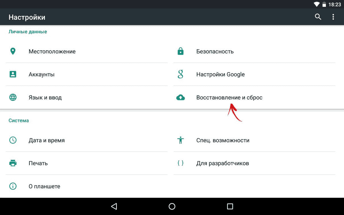 - Перейдите в меню «Настройки» → «Восстановление и сброс».