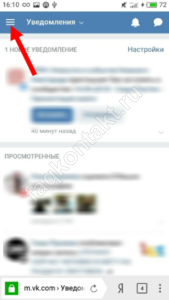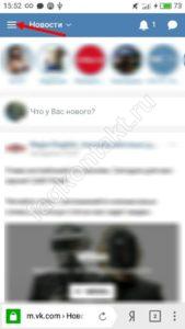 - Вначале необходимо войти в свой профиль ВК, используя браузер, который установлен на телефоне;
