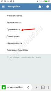 - Выбрать пункт «Приватность» в разделе «Настройки».