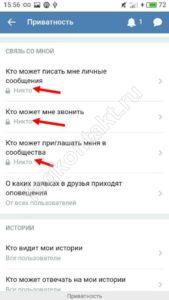 - В настройках приватности надо выставить максимально закрытые требования. В разделах «Моя страница» и «Записи» и «Истории» для всех параметров устанавливается значение «Только я»; для раздела «Связь со мной» — «Никто».