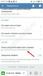Также не получится избавиться от аккаунта обходным методом через настройки приватности. Это связано с тем, что в приложении нет настройки «Страница видна только пользователям соцсети».