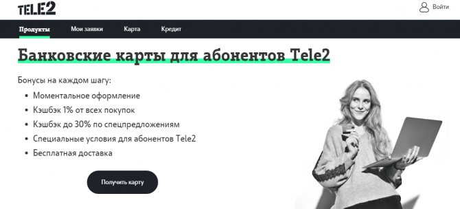 Tele2 предлагает онлайн-выпуск кредитных карт без посещения офиса провайдера. Заявку можно подать на официальном ресурсе компании или на портале — https://cards.tele2.ru. Если подписчик решил самостоятельно заполнить анкету, важно учесть основные нюансы: