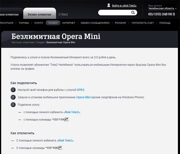 Условия использования сервиса «Безлимитной Оперы Мини» от Теле2