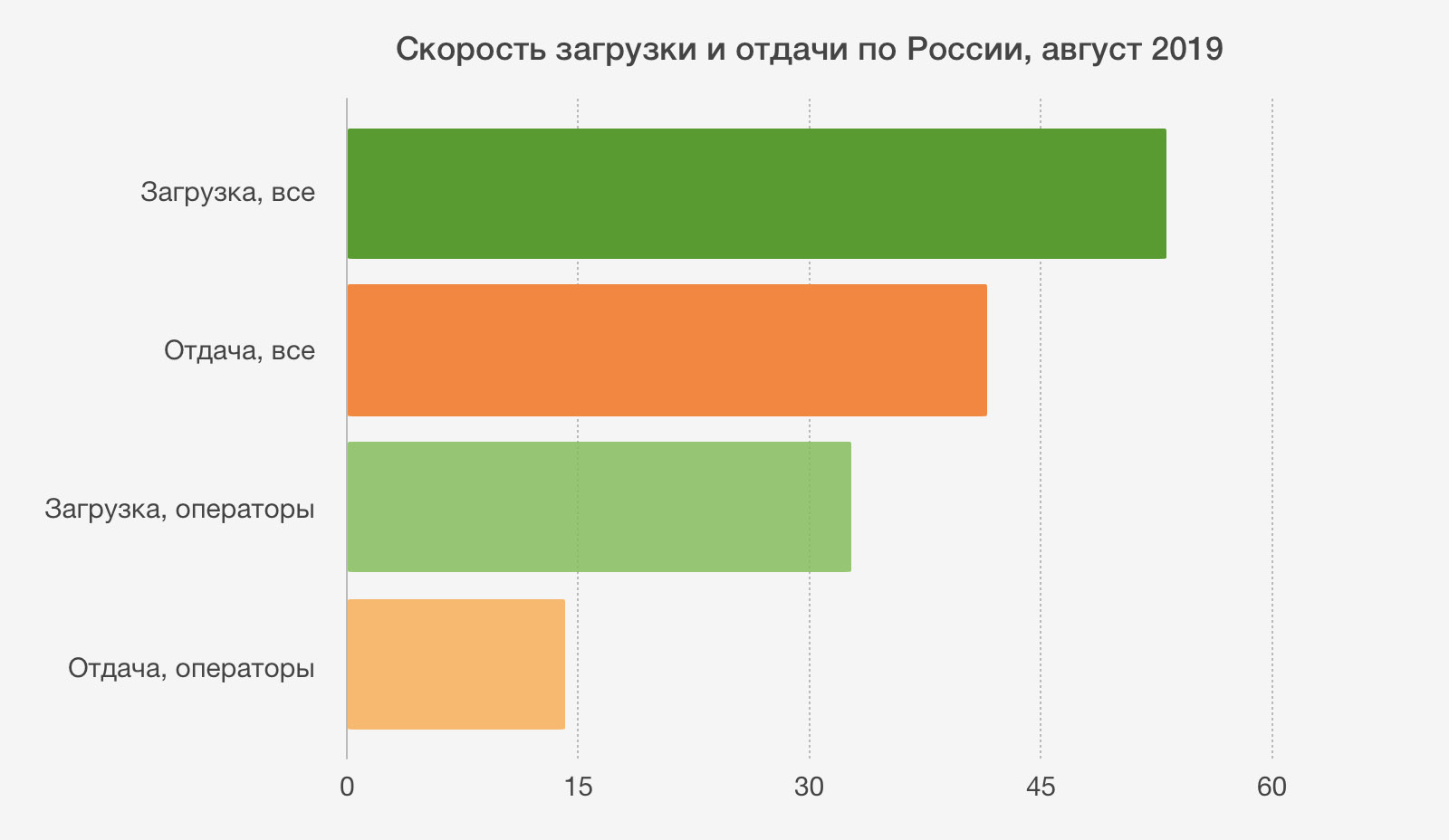 Санкт-Петербург: 25 Мбит / с для загрузки, 13,8 Мбит / с для загрузки