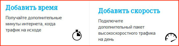 Оператор предоставляет своим клиентам услугу «Добавить время», благодаря которой начисляются дополнительные 20 минут, что расширяет возможности использования всемирной сети. Цена вопроса около 15 рублей. Преимущество этого метода в том, что количество потраченного трафика не учитывается в определенный период времени, т.е вы получаете «безлимитный шорт». Данная услуга подключается по номеру * 155 * 171 # или через личный кабинет. Опция подключится автоматически после использования основного пакета.
