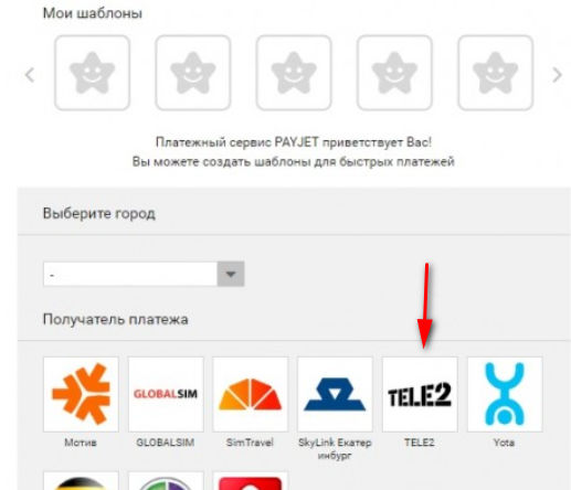 Перевод денег - На странице с операторами мобильной связи укажите желаемый — Tele2.