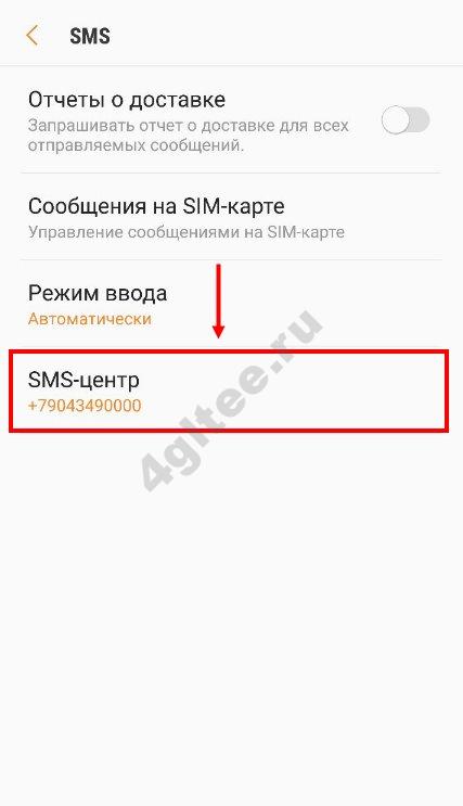 - Узнаем номер СМС-центра нашего мобильного оператора, сверяем его по номеру телефона, указанному в графе. Если номер совпадает, он переключается на альтернативный, который также можно получить у поставщика молярных соединений.