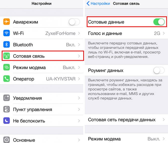 Откройте «Настройки» — «Сотовая связь» и отключите ползунок «Сотовые данные». При работе в сети LTE попробуйте полностью отключить сеть или настроить ее исключительно для передачи данных (Голос и звук — отключить). Перезагрузите ваш iPhone.