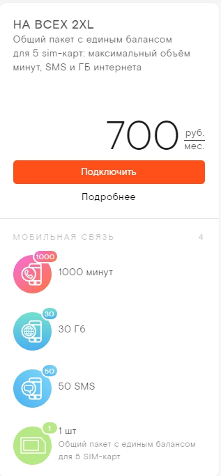 Не остаются без внимания и многодетные семьи. Если у вас есть группа из пяти человек, которые хотят получить единый для всех тариф за 700 рублей в месяц. Лимиты тарифов следующие: