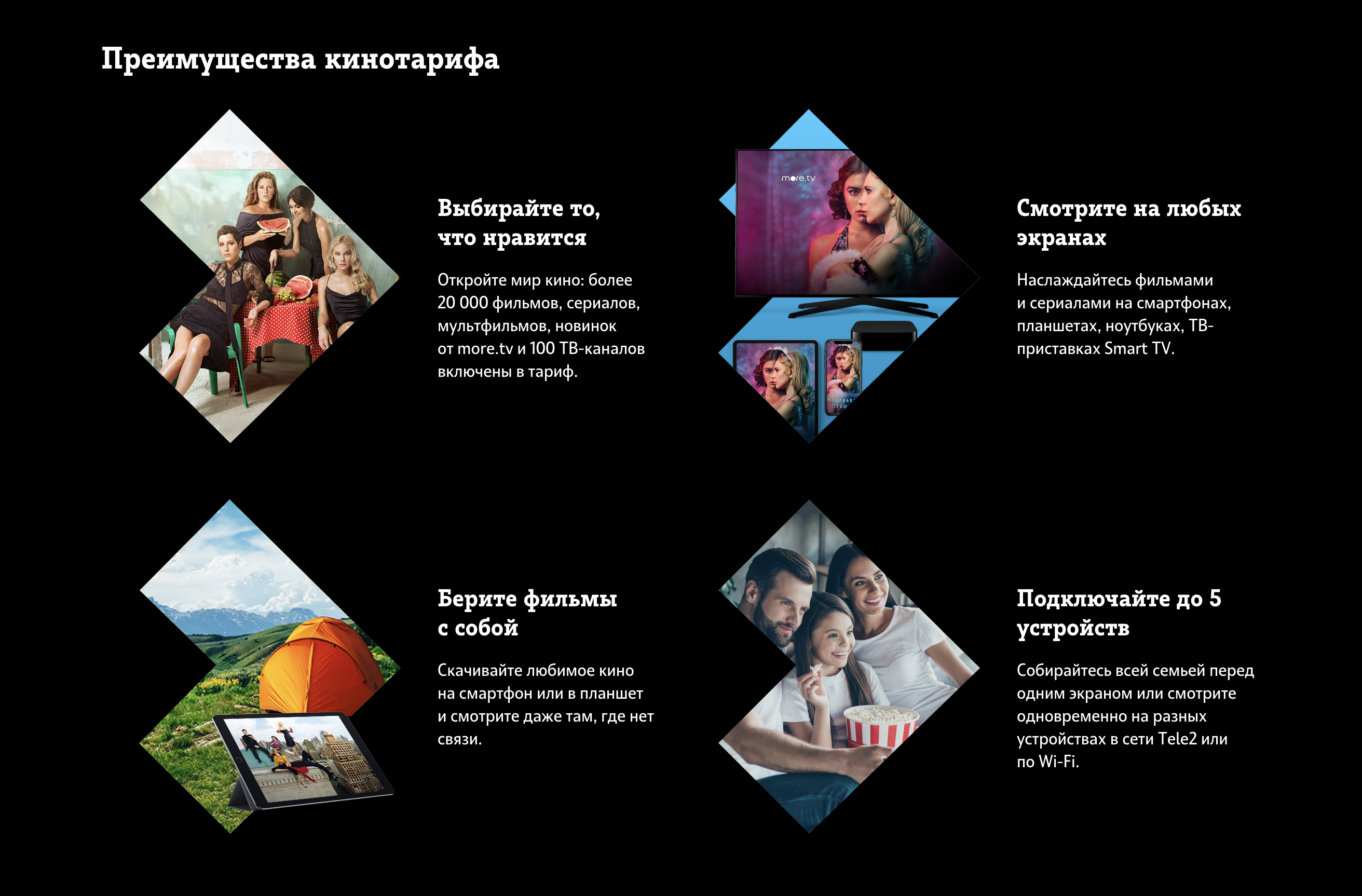 Став обладателем тарифа «Anywhere online», вы можете подключить до 5 устройств. Имея бесплатный доступ к Tele 2 TV, вы можете смотреть фильмы и телешоу, подключившись к Wink.